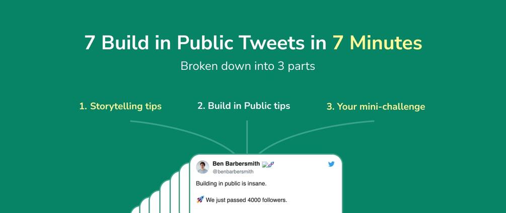 I broke down 7 ways to write Build in Public tweets from one of the most authentic entrepreneurs I’ve ever seen on Twitter, Ben Barbersmith, to show you how to do it in 7 minutes.